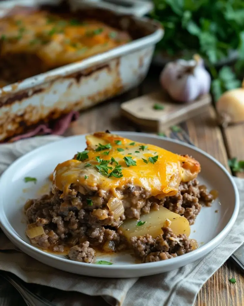 Ingredient Substitutions: You can use ground turkey or chicken instead of beef for a lighter option. Swap out the potatoes for sweet potatoes for a delicious twist. Optional Variations: Add in some frozen mixed vegetables or green beans for added nutrition and color. Experiment with different types of cheese, like mozzarella or gouda, for a unique flavor profile. Storage or Reheating Tips: Leftovers can be stored in an airtight container in the refrigerator for up to 3 days. Reheat in the oven or microwave until warmed through.