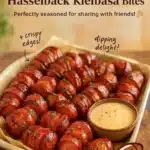 Slice the kielbasa into rounds but not all the way through so each slice holds the glaze. Brush the mustard mix over each piece so it soaks in while baking. Use a baking dish that fits the bites without crowding. For more easy appetizer ideas, see this crispy bang bang salmon bites.