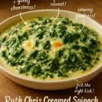 Ruth Chris Creamed Spinach is a rich and creamy side dish. It pairs well with steak and other main dishes. This version uses fresh spinach, heavy cream, cream cheese, and Parmesan for a smooth, classic taste.