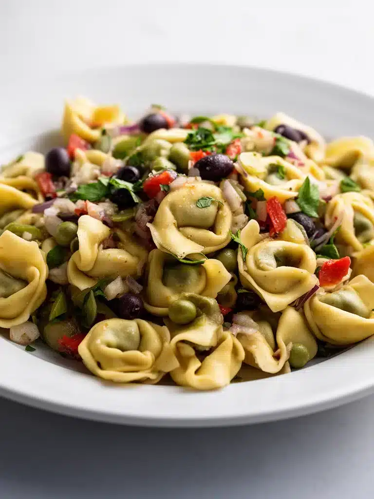 Generic description: A beautiful array of tortellini pasta salad showcasing fresh ingredients and vibrant colors.